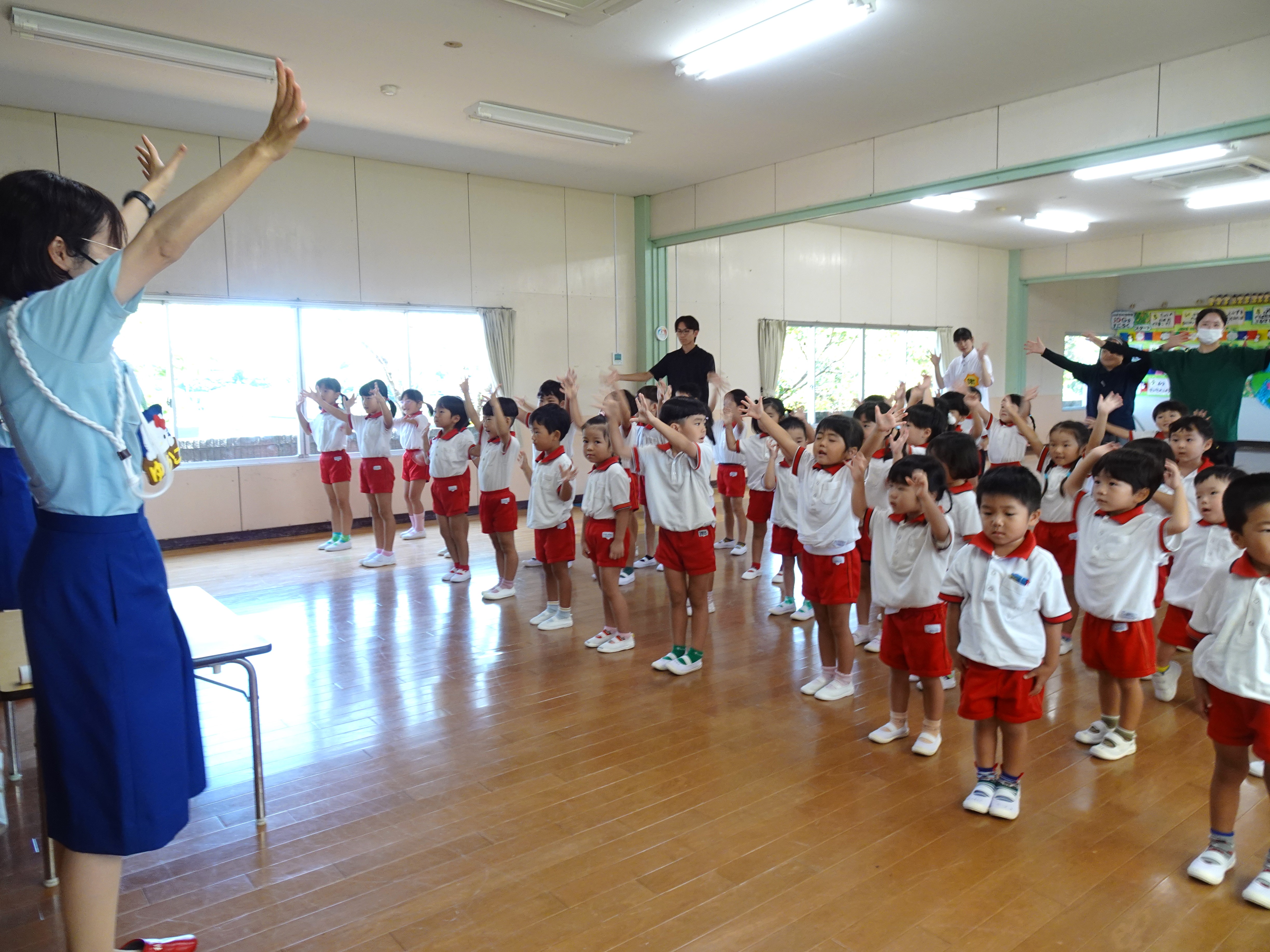 交通安全教室の最後に行う「信号マン体操」が大好きな子どもたちです♪