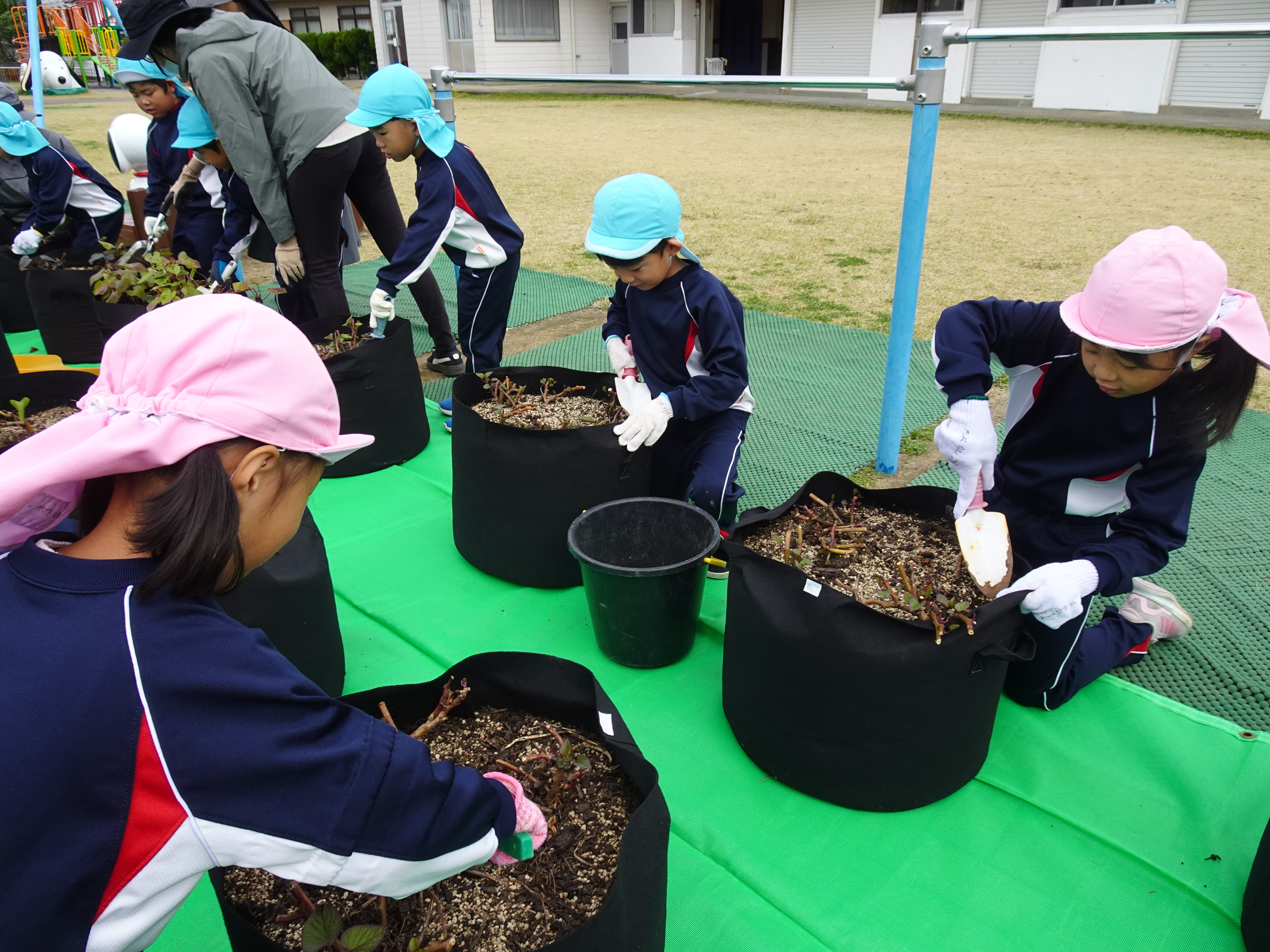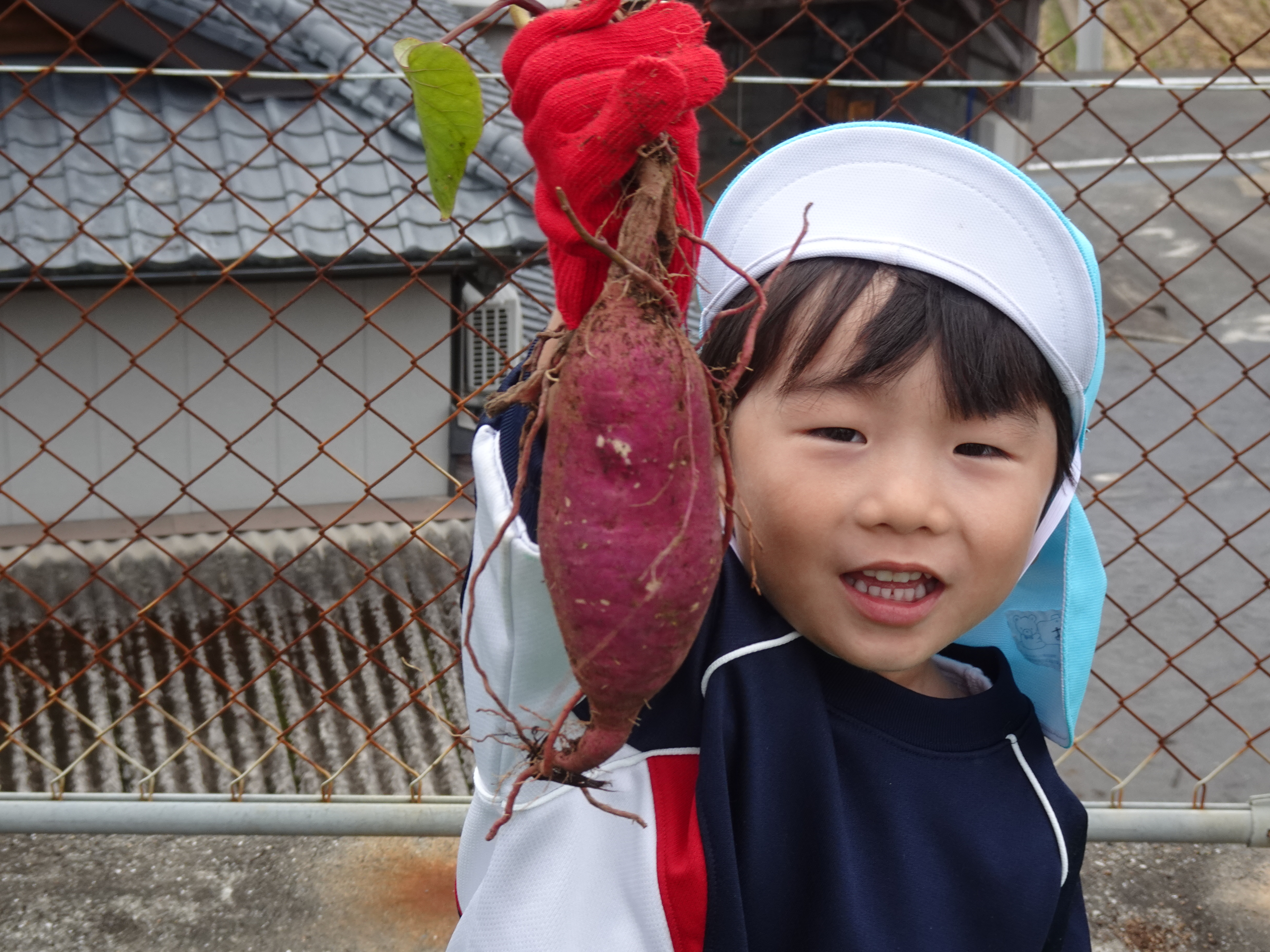 今日は待ちにまった芋ほりでした。園長先生よりお芋の掘り方について話を聞き、芋ほりを楽しみました。5月に植え、毎日園庭でプランターの芋の成長を見守ってきた子どもたち。スコップや手を使って堀り、お芋を手にした時には大喜びの様子でした!今日収穫した芋は、各クラスで調理して美味しく食べたり、スタンプをするなどして食育を楽しみたいと思います。