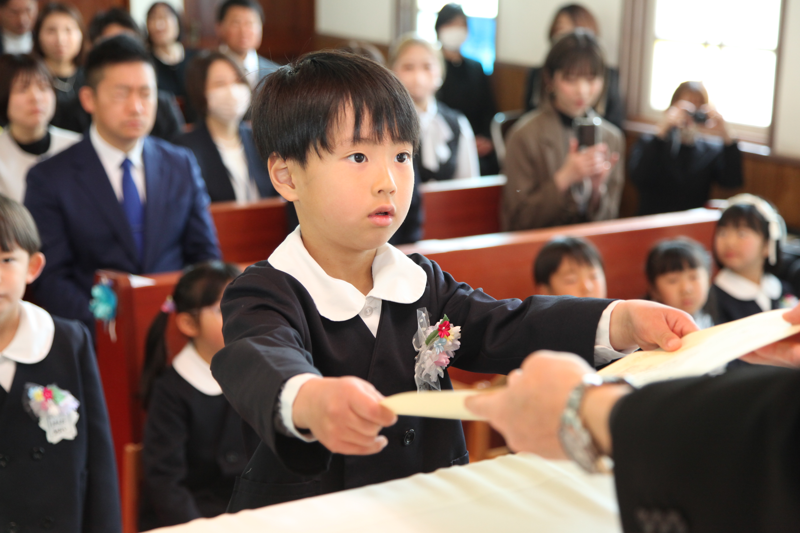 年長組の子どもたちは、この一年で心も体も大きく成長し、希望に満ちた笑顔で修了証書を受け取り、それぞれの未来へと巣立っていきました。